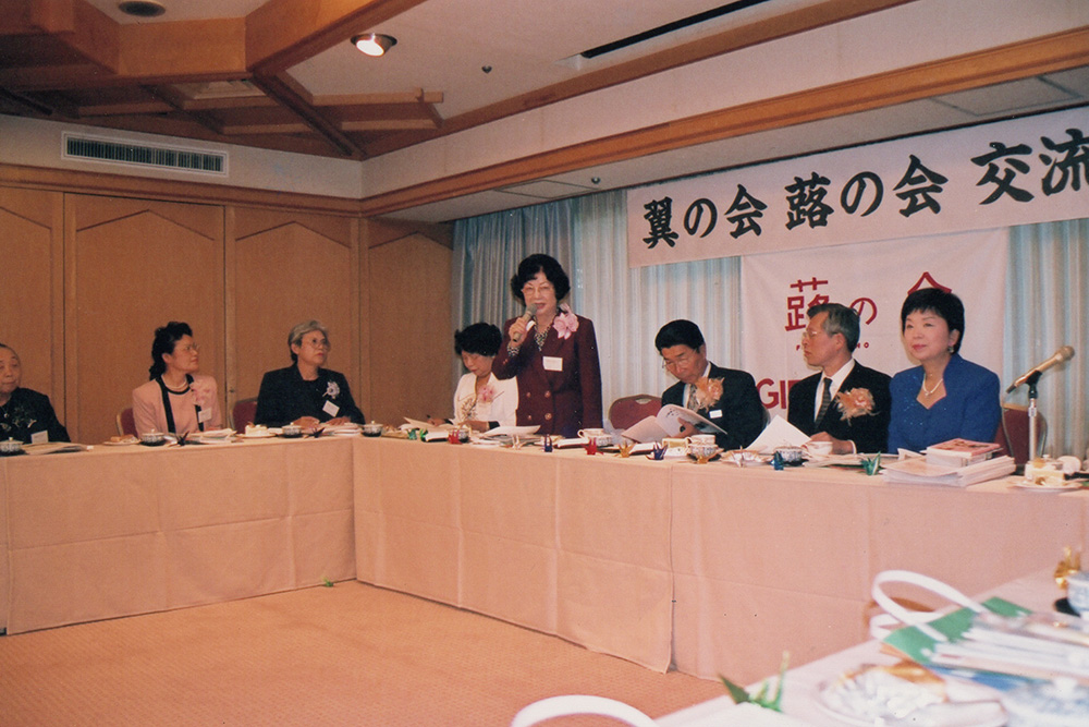 互いの活動を紹介に続いて自由に討議。国際平和や、男女共同参画、地域でできることなどについて意見交換した。当日は新聞社(岐阜新聞)の取材あり、町長、県議会議長の出席もあり、「蕗の会」の河合雅子会長のきめ細かい且つパワーあふれる姿に感動と刺激を受けた。研修終了後は高山、上高地、和倉温泉など訪れ翼会員の親睦を深めた。研修時間が短く反省点も多かった。