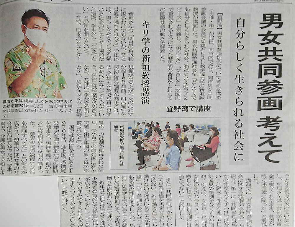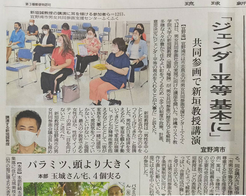 - 「ジェンダー平等基本」ついて考える講座に8名の翼会員が参加し、条例について質問 等意見交換を行いました。(沖縄タイムス・琉球新報新聞記事より)