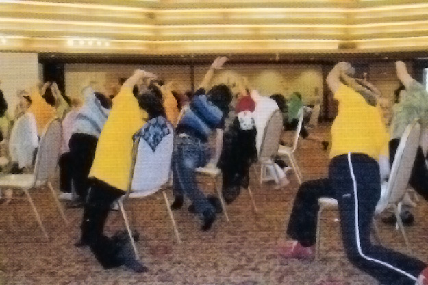 - 踏みすると骨盤のゆがみ、筋肉の衰えなどがわかる。自分の体のことを知るのは楽しい。意識が変われば体が変わるとは先生の弁。日ごろの運動不足と筋肉の硬さがよく分かった。筋肉痛をお土産にお持ち帰りくださいとの講師の話は、ユニークで、楽しい研修だった。
