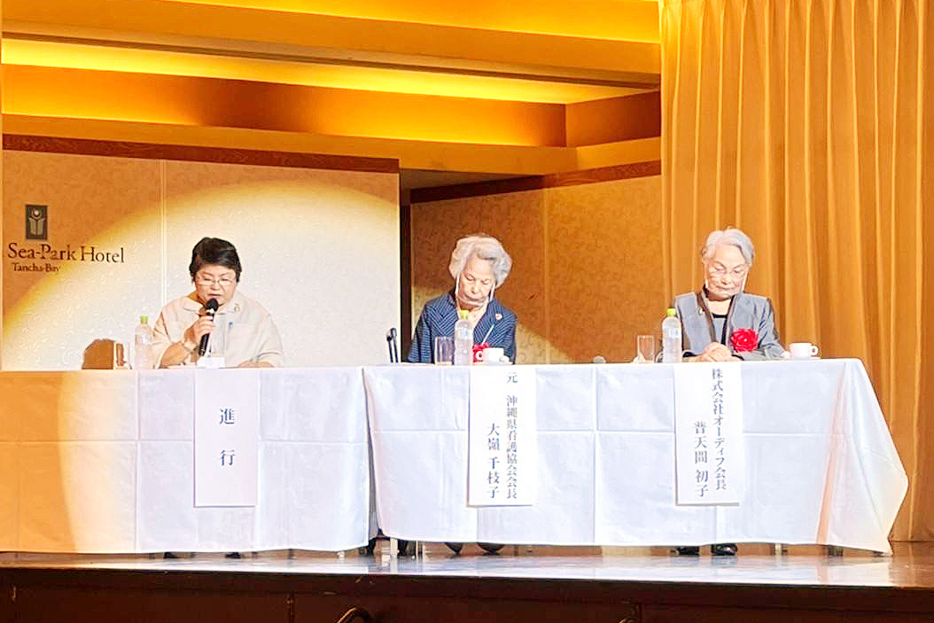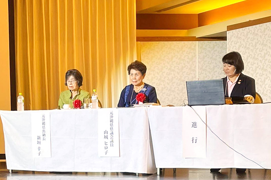 パネリスト:大嶺千枝子氏(元沖縄県看護協会会長)、普天間初子氏(25期(株)オーディフ会長)、新垣幸子氏(7期元沖縄県出納長)、山城ヒロ子氏(9期元沖縄県議会議員)