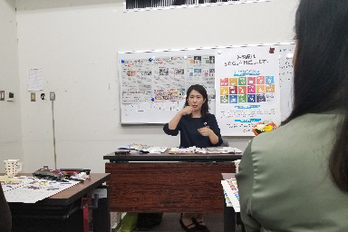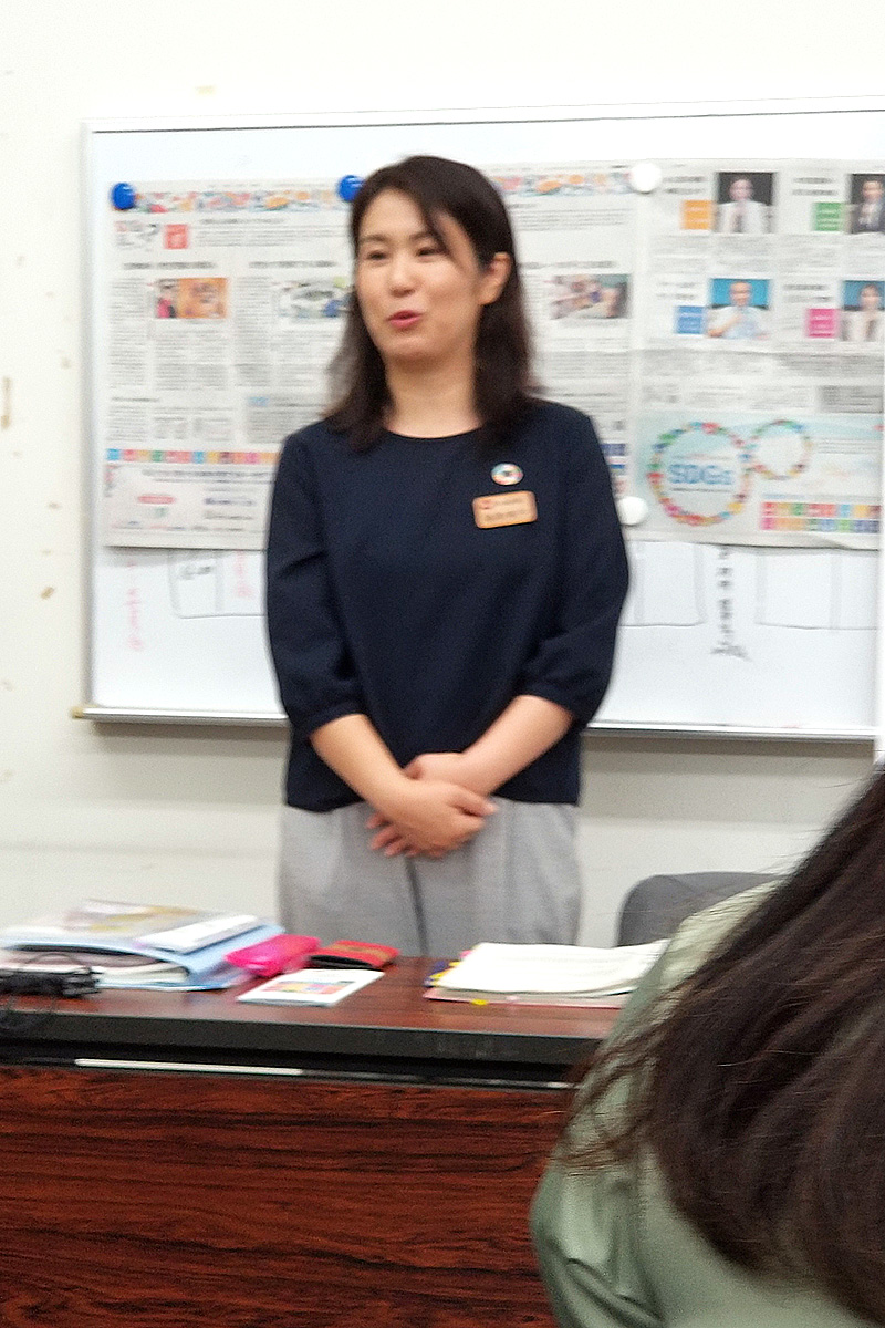 SDGs・沖縄県の取り組みについて丁寧に説明する島津典子氏 - SDGsの意味 SUSTAINABLE DEVELOPMENT GOALS