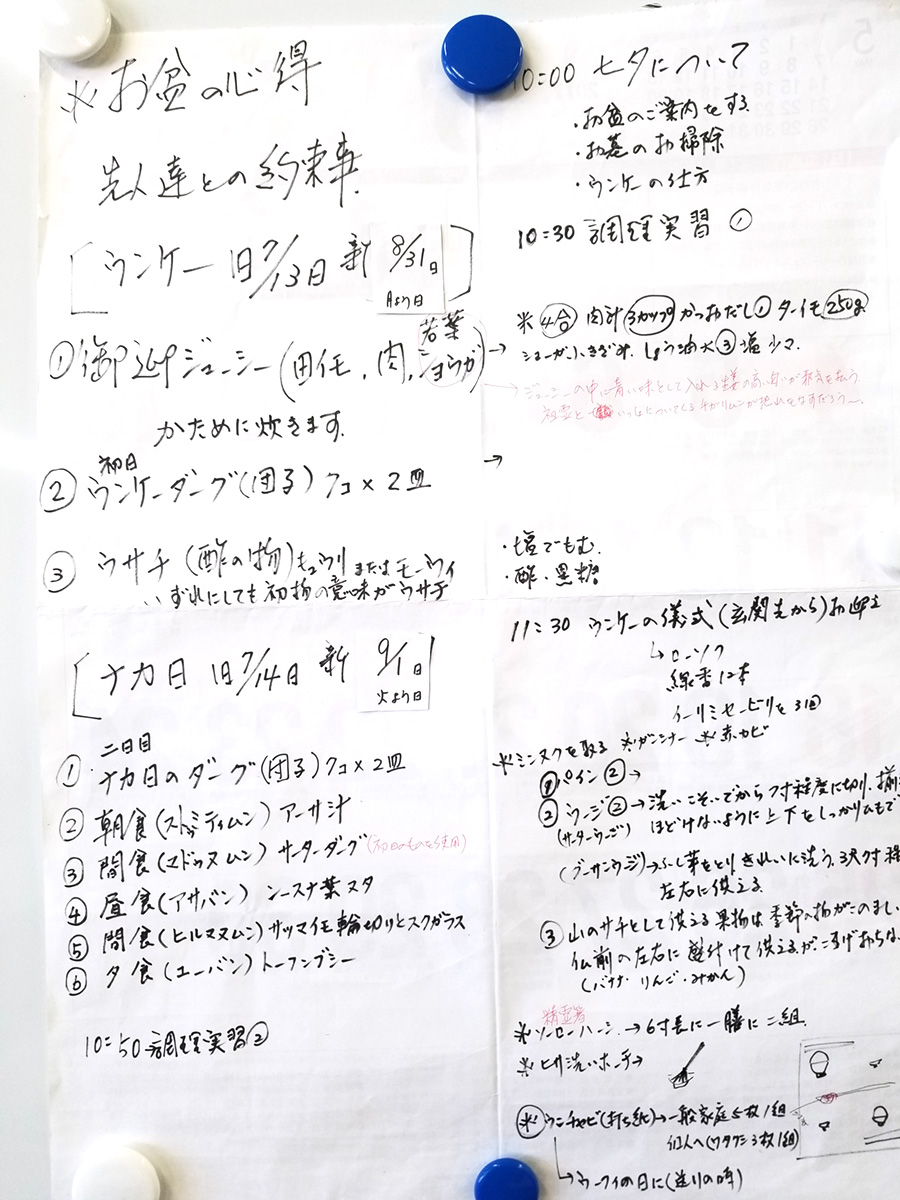 打ち紙の使い方、ソーローメーシの使い方、ウークィの儀式など一つ一つメモを取った。