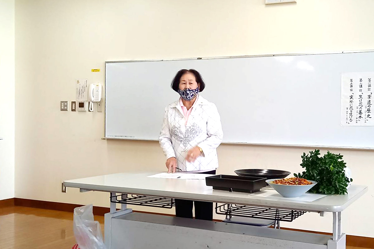 「華道の歴史」と「生け花について」講義を受ける。